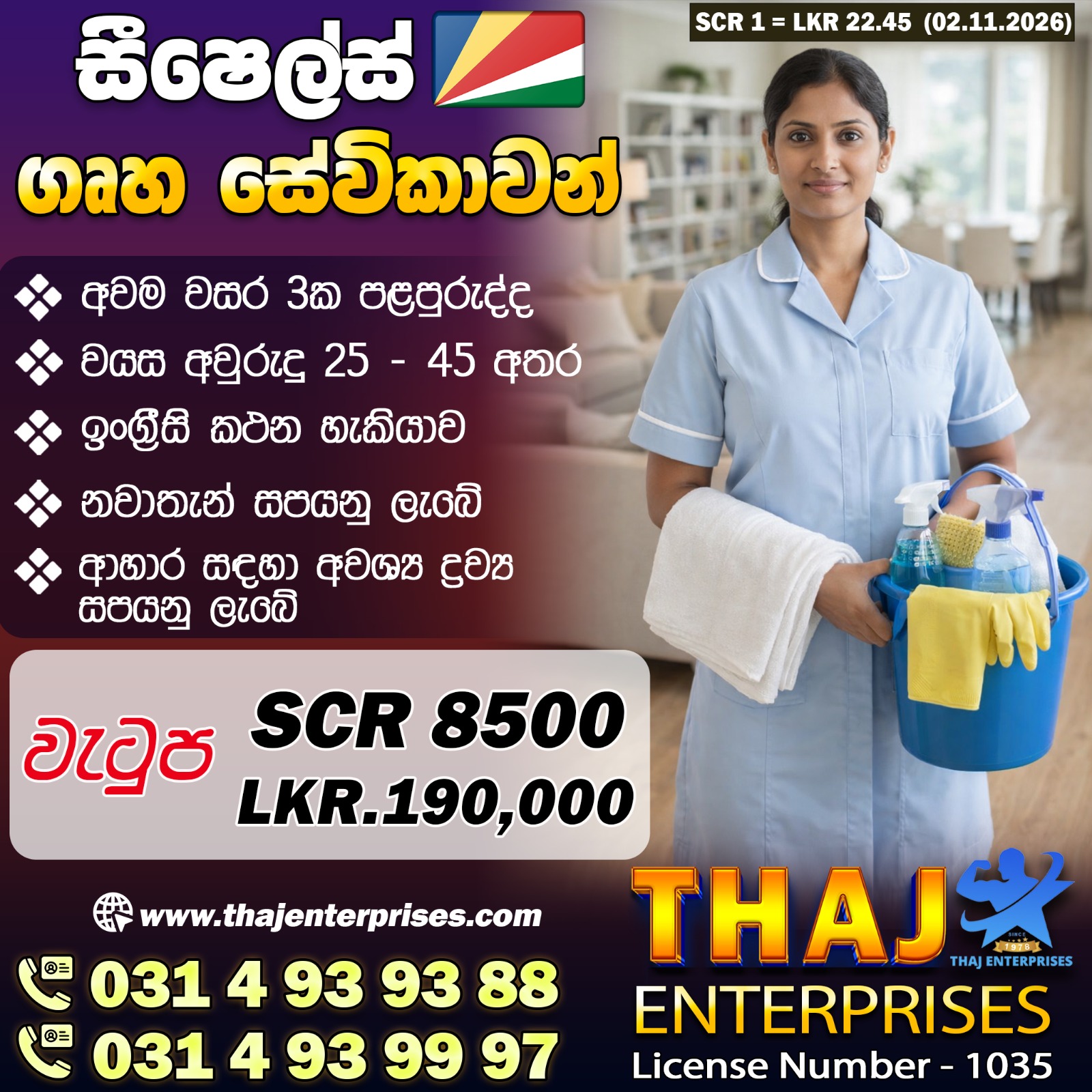Salary : SCR 8,500 රුපියල් 190,000/-