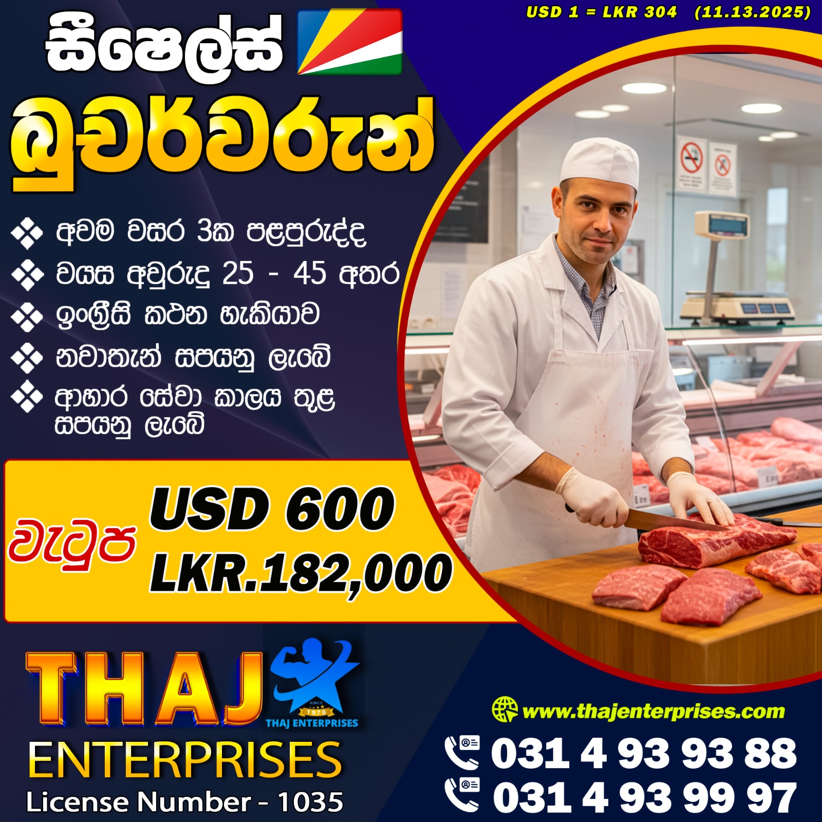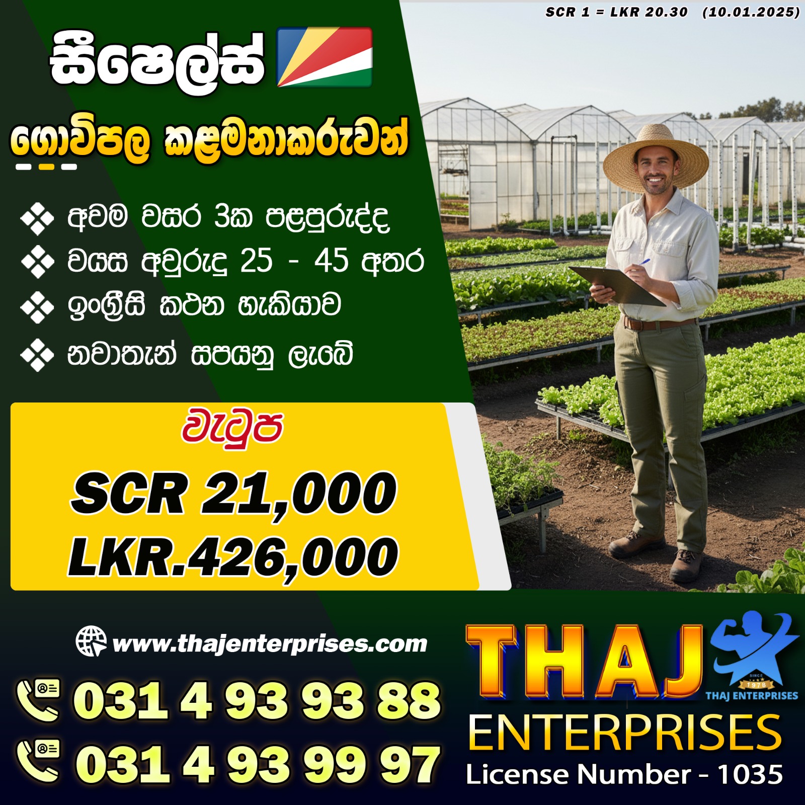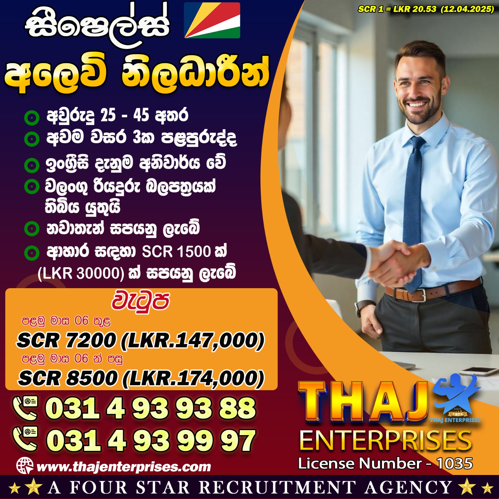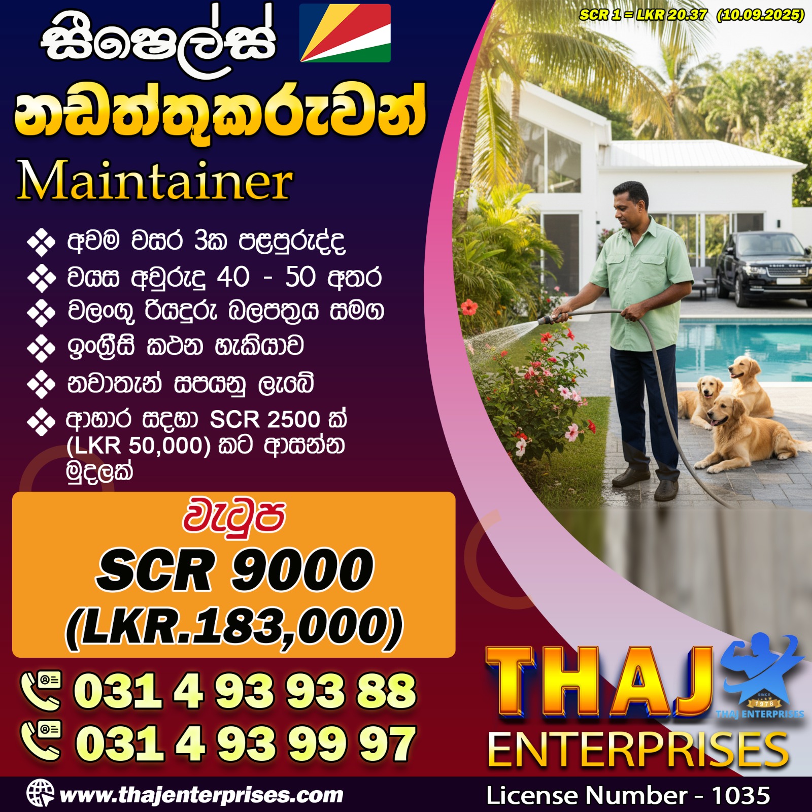 Salary : SCR 9,000 (රුපියල් 183,000/-)