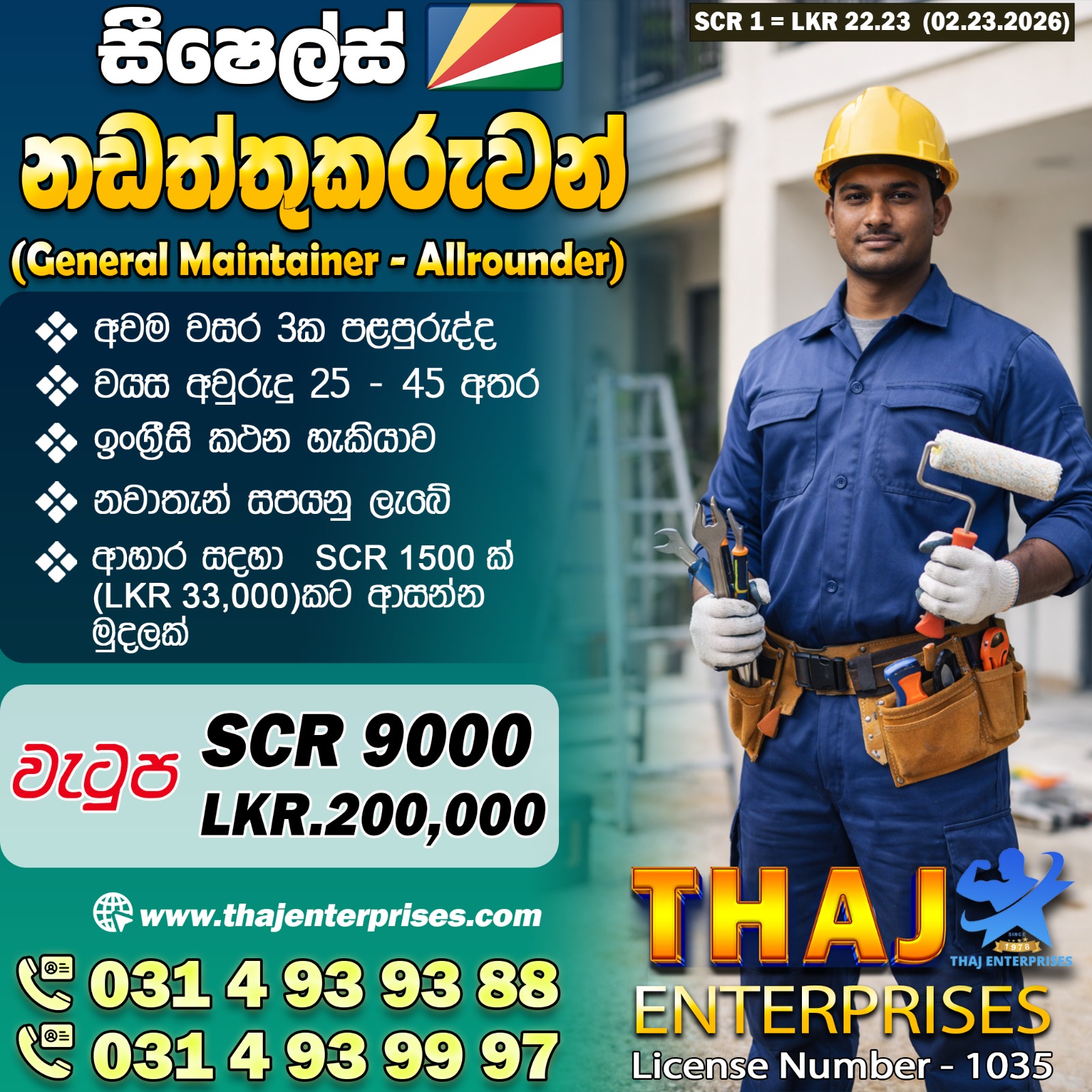 Salary : SCR 15,000 රුපියල් 331,000/=