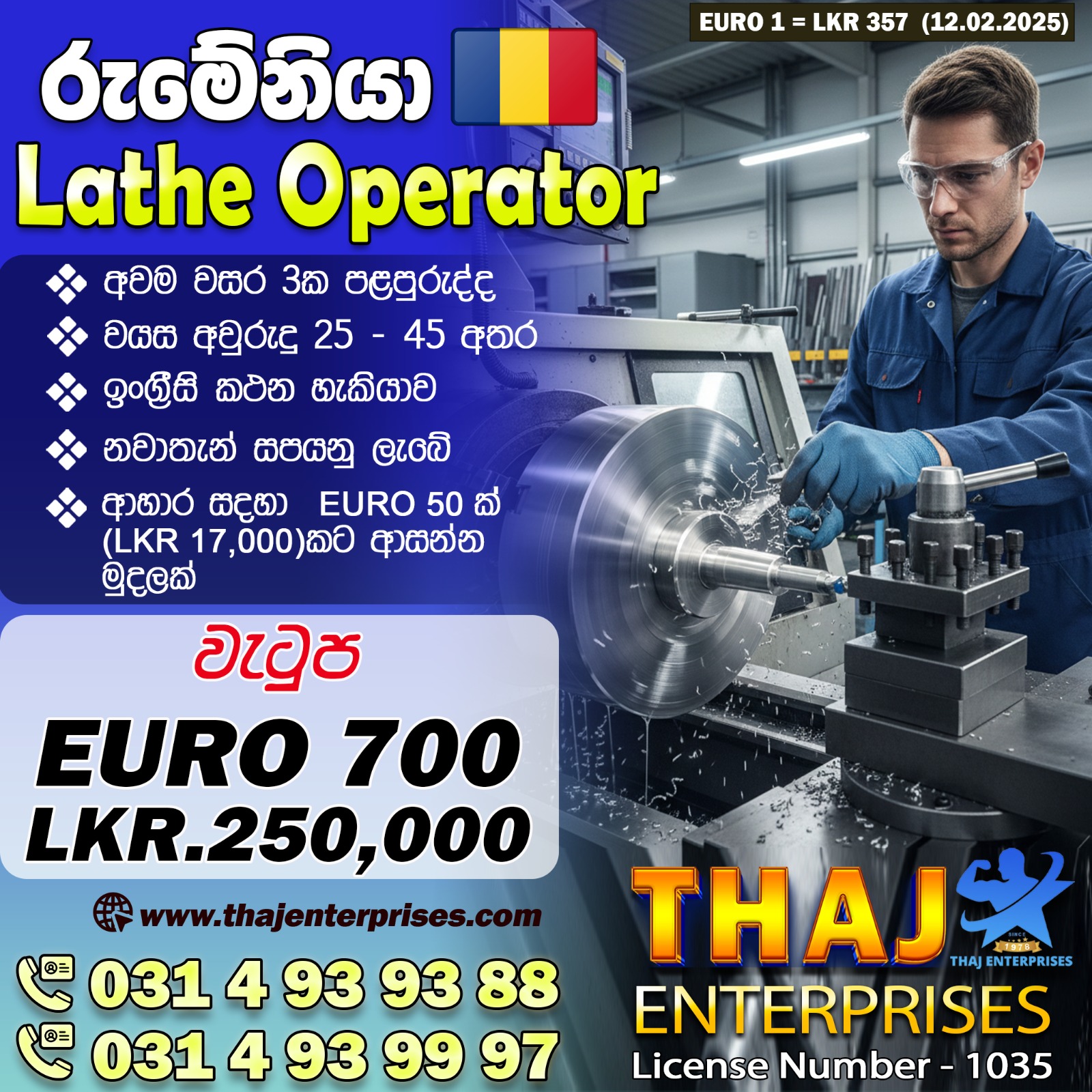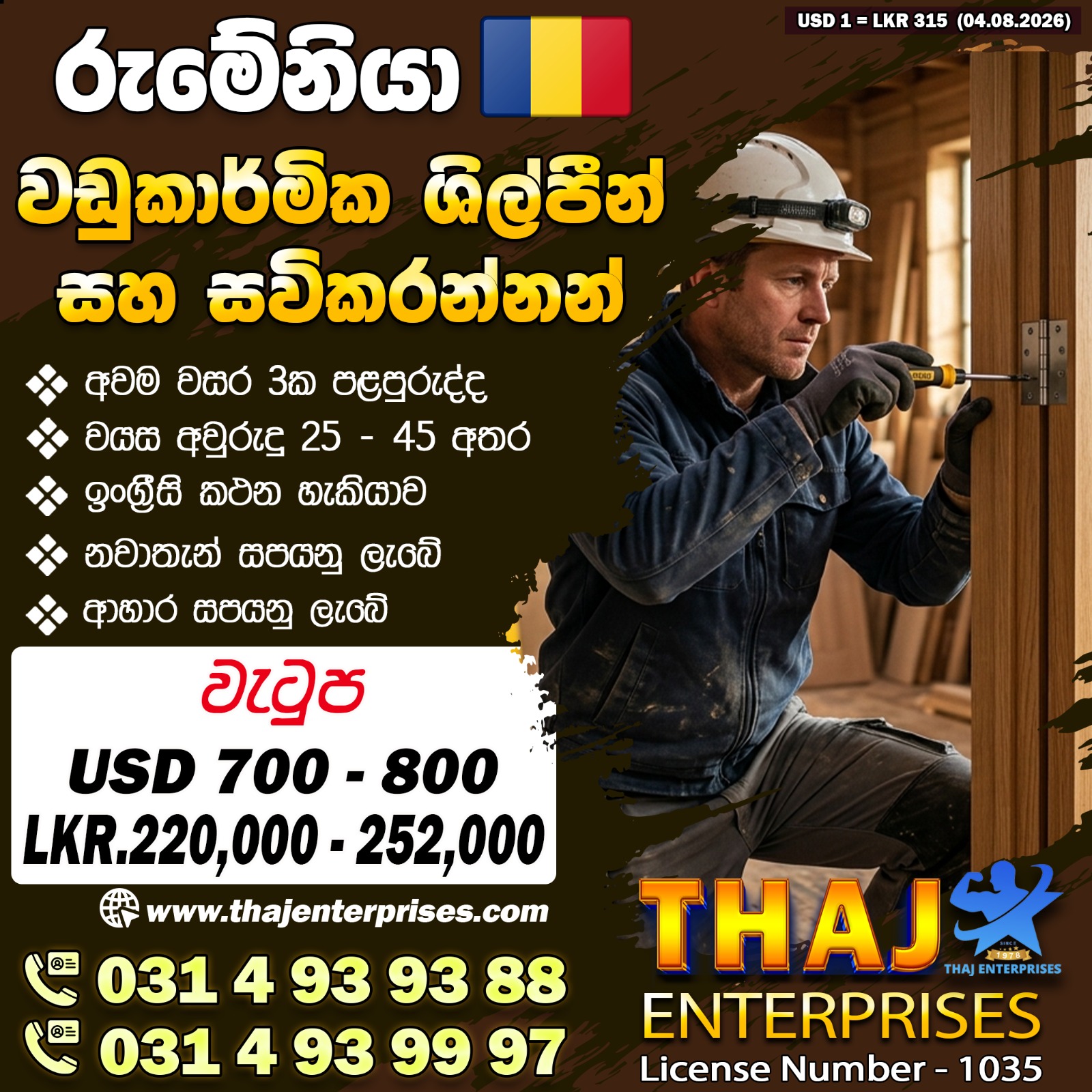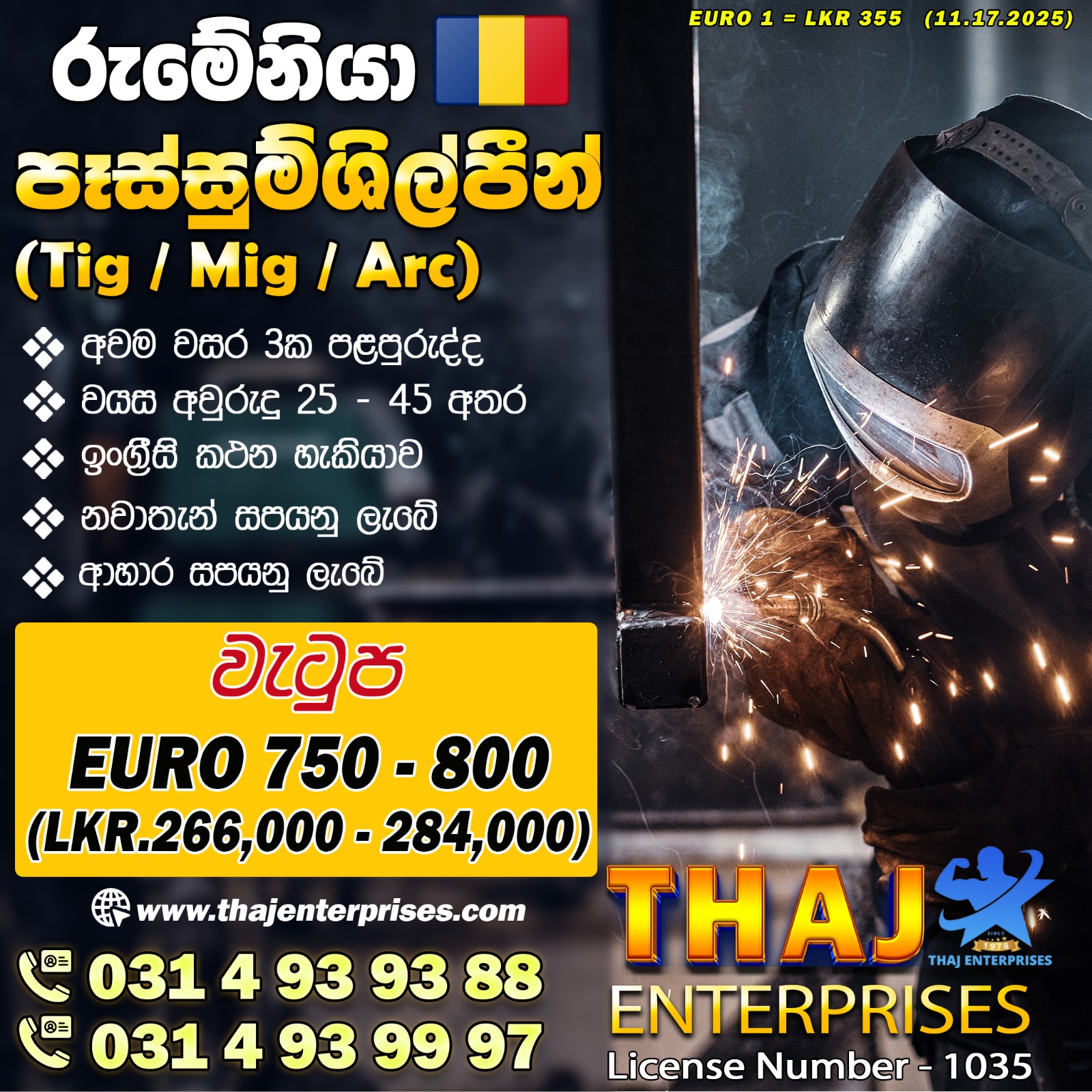 Salary : Euro 750 - 800 (රුපියල් 266,000 - 284,000/-)