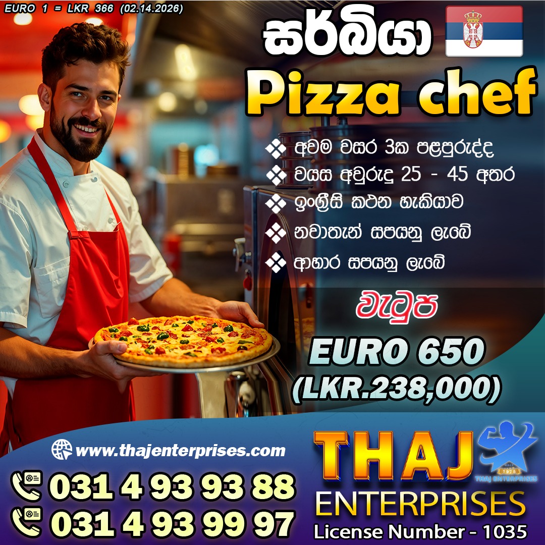 Salary : Euro 600 - 650 (රුපියල් 209,000 - 227,000/-)