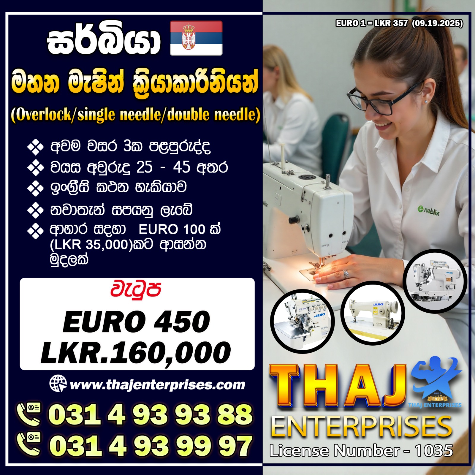 Food : ආහාර සදහා Euro 100 (රුපියල් 35,000) සපයනු ලැබේ