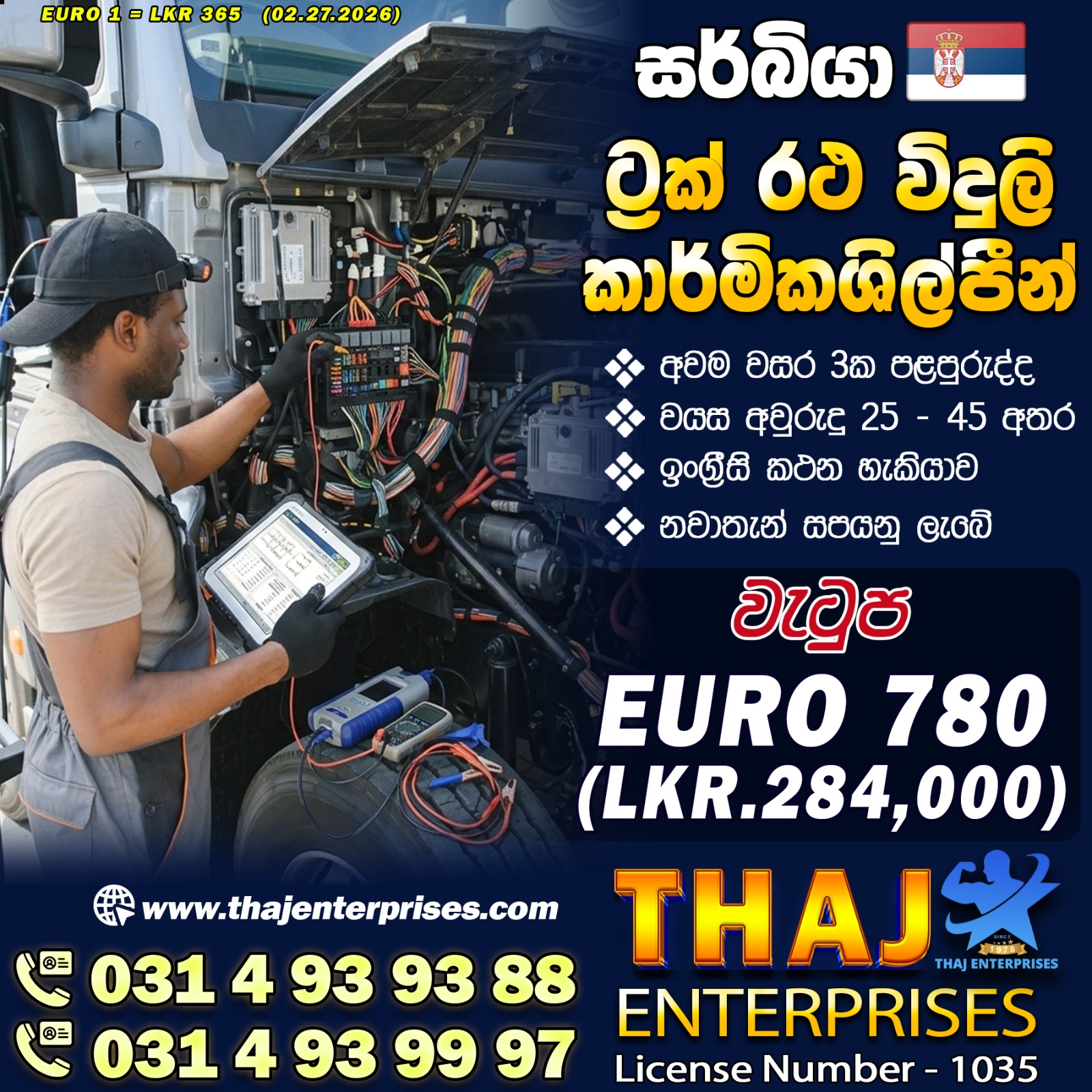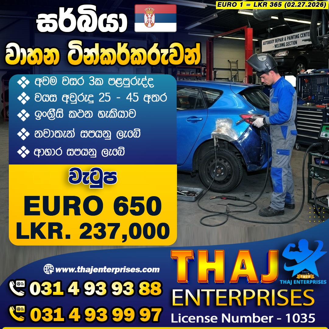Salary : Euro 650 රුපියල් 237,000/-