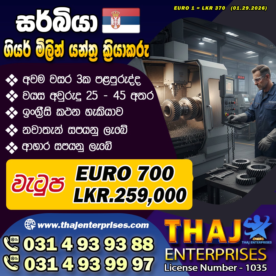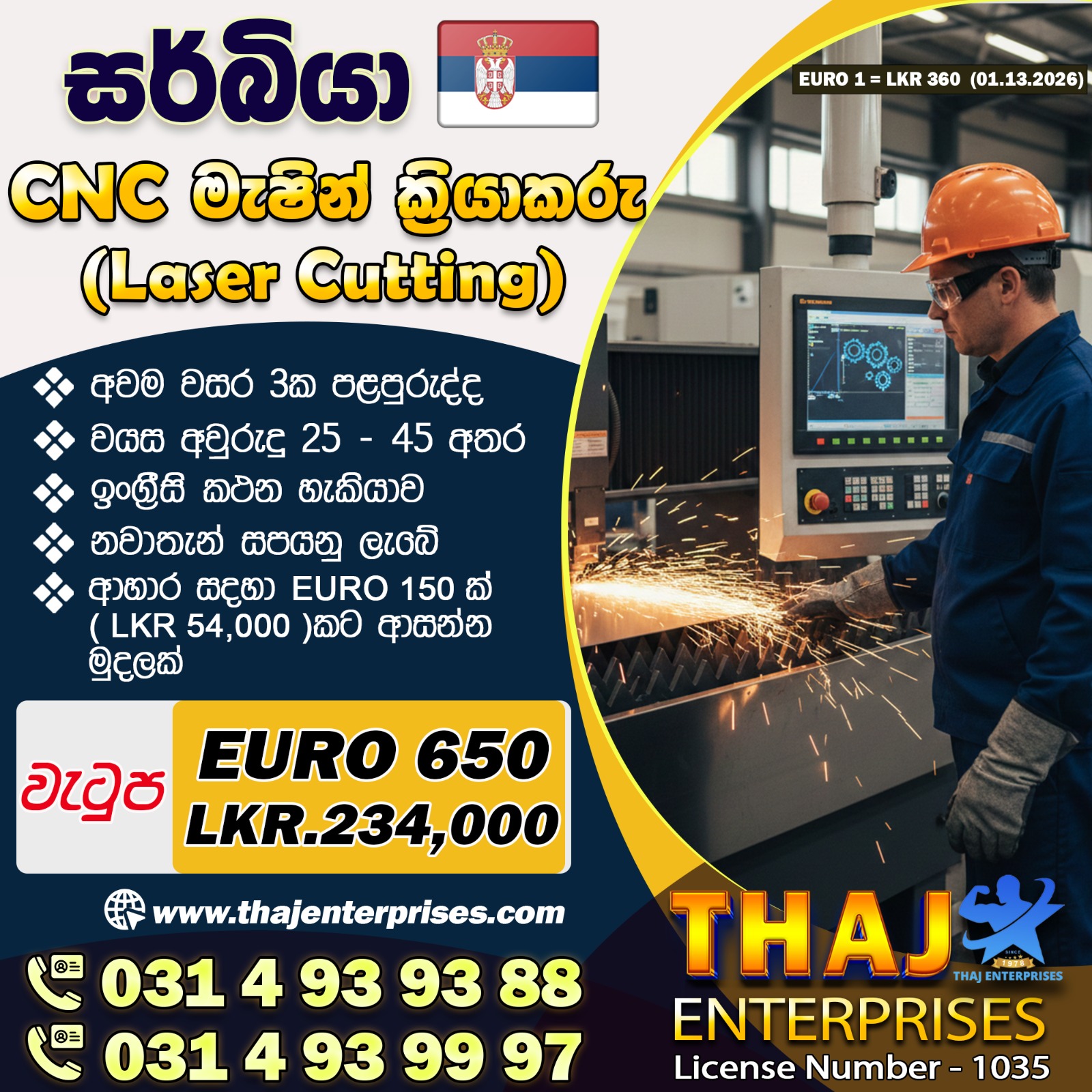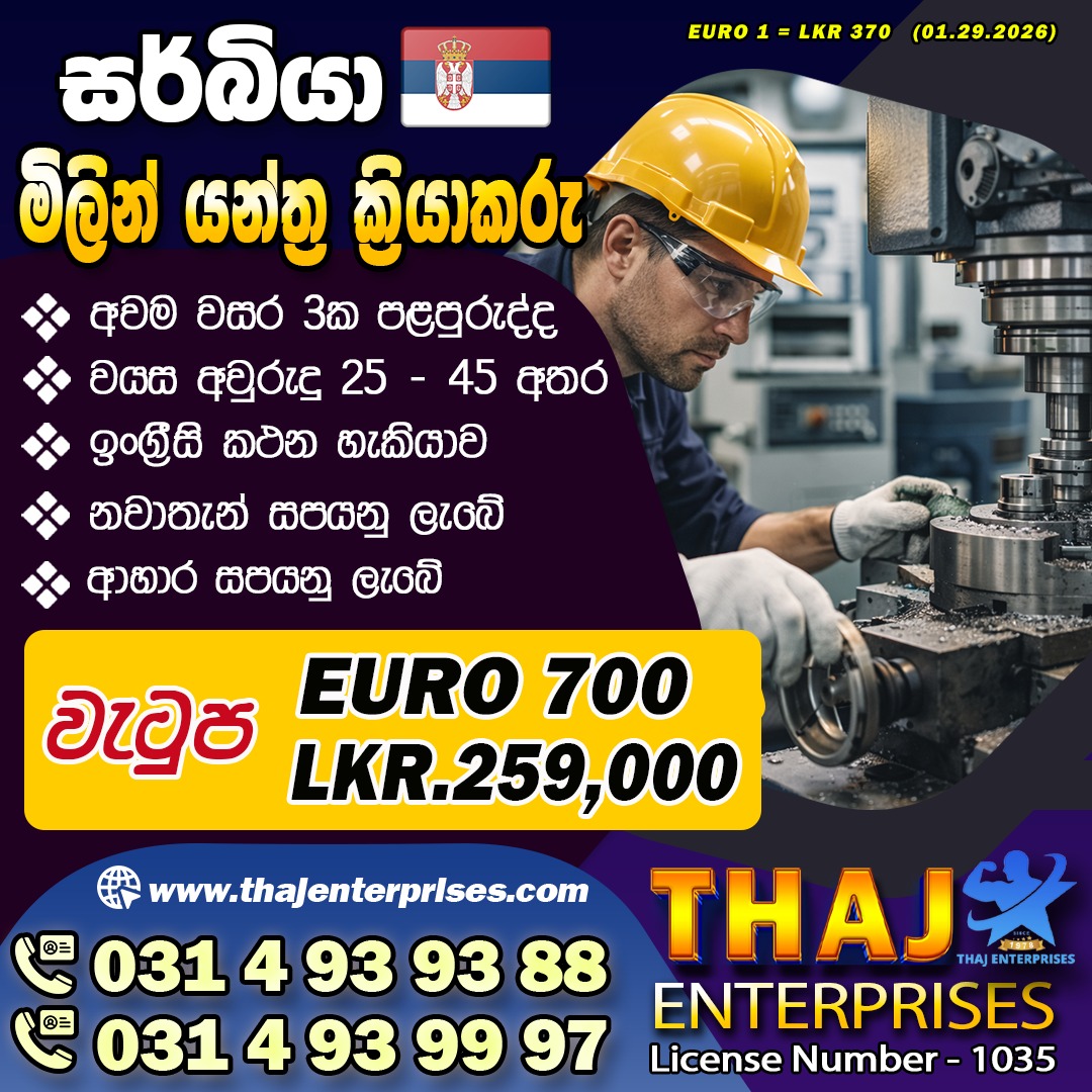 Food : ආහාර සදහා Euro 100 (රුපියල් 35,000) සපයනු ලැබේ