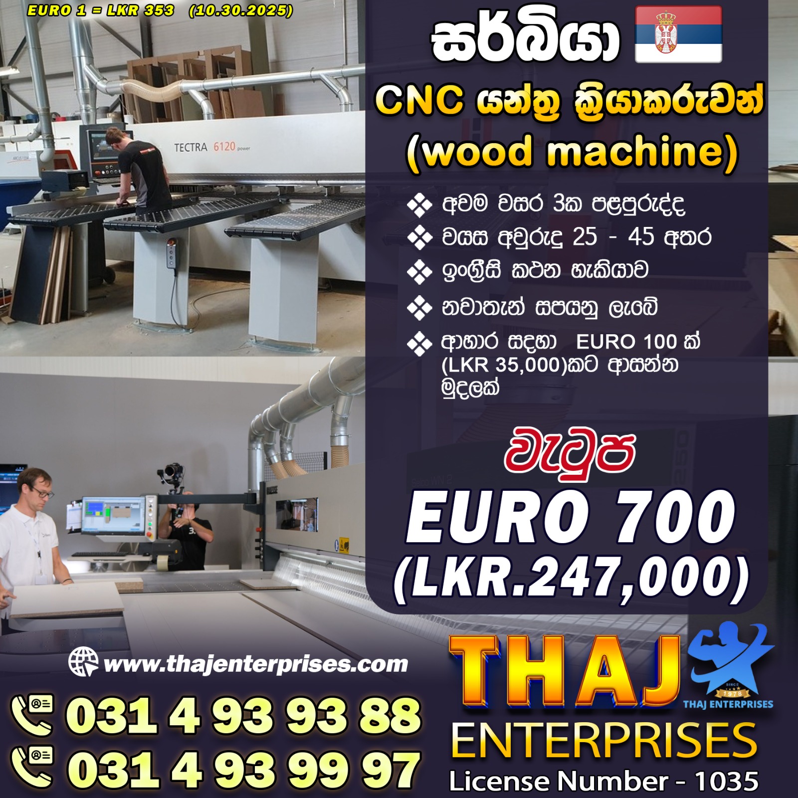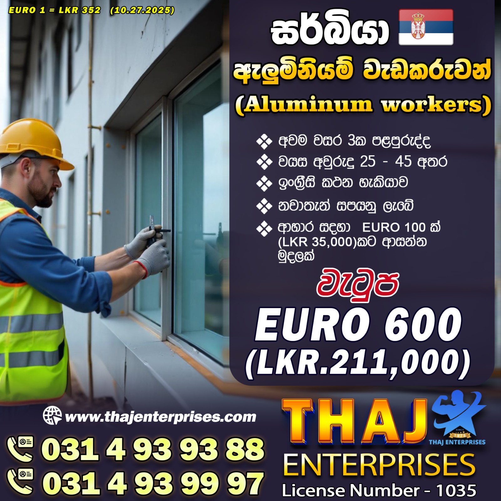 Food : ආහාර සදහා Euro 150 (රුපියල් 53,000/-) සපයනු ලැබේ