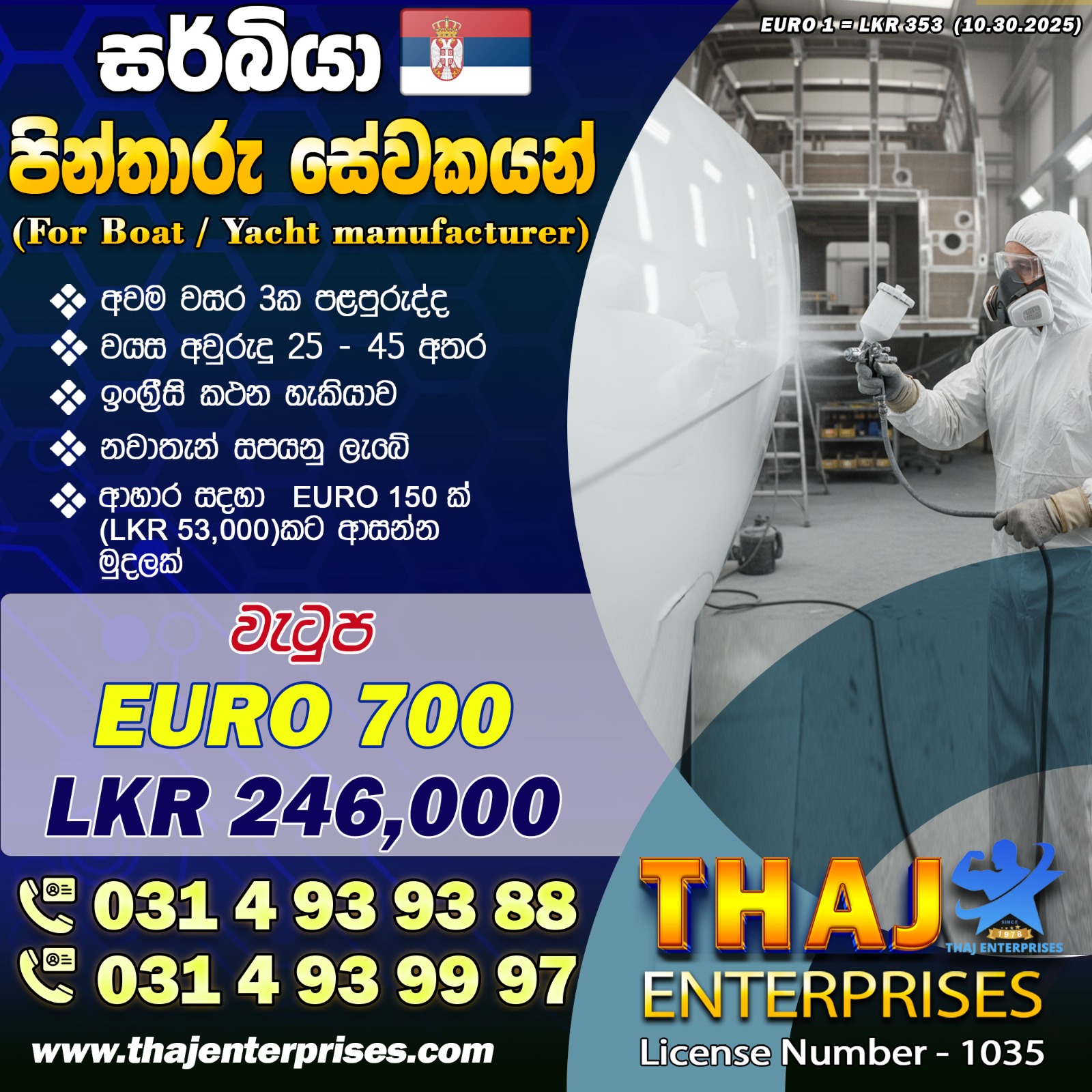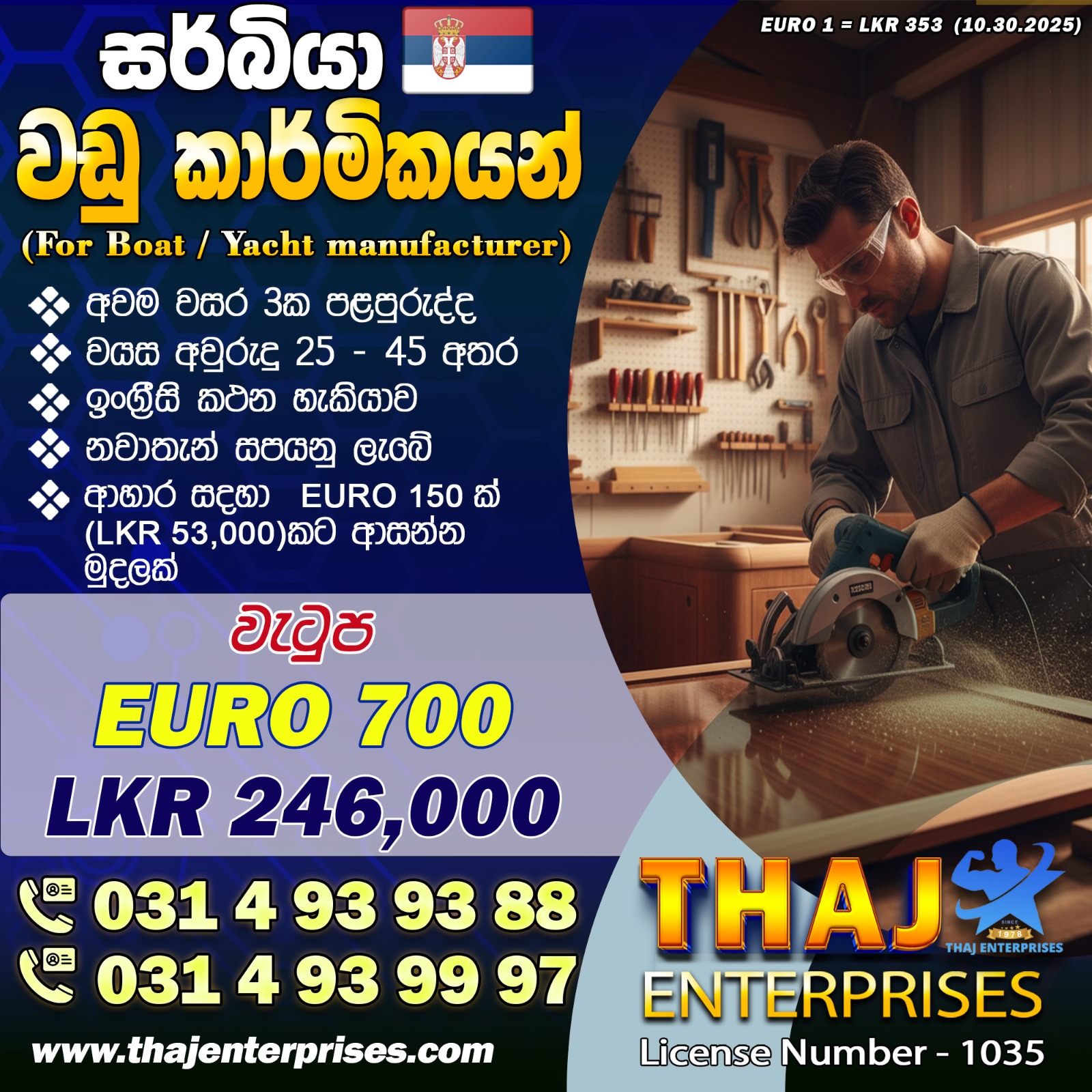 Salary : Euro 700 (රුපියල් 246,000 /-)