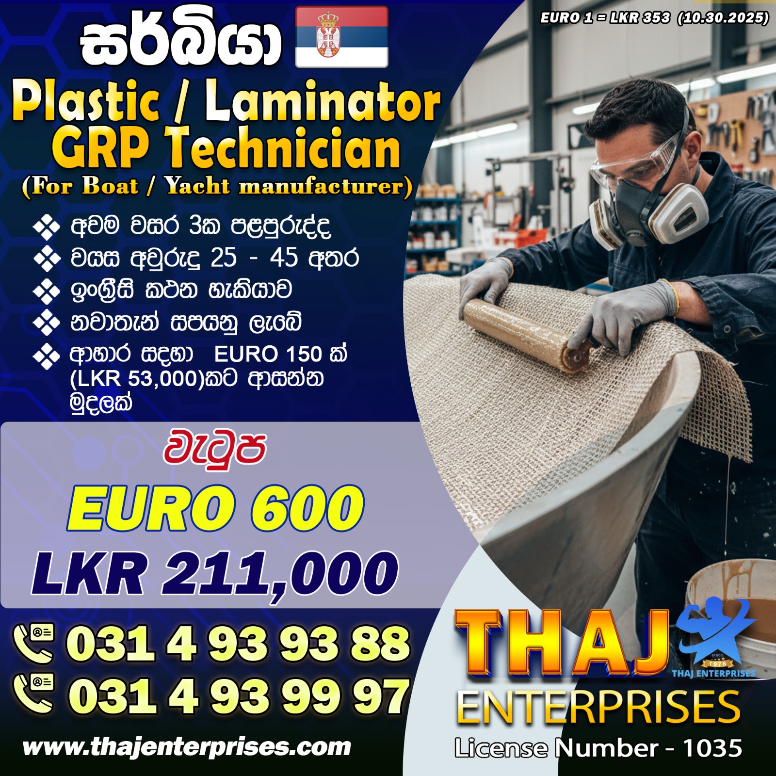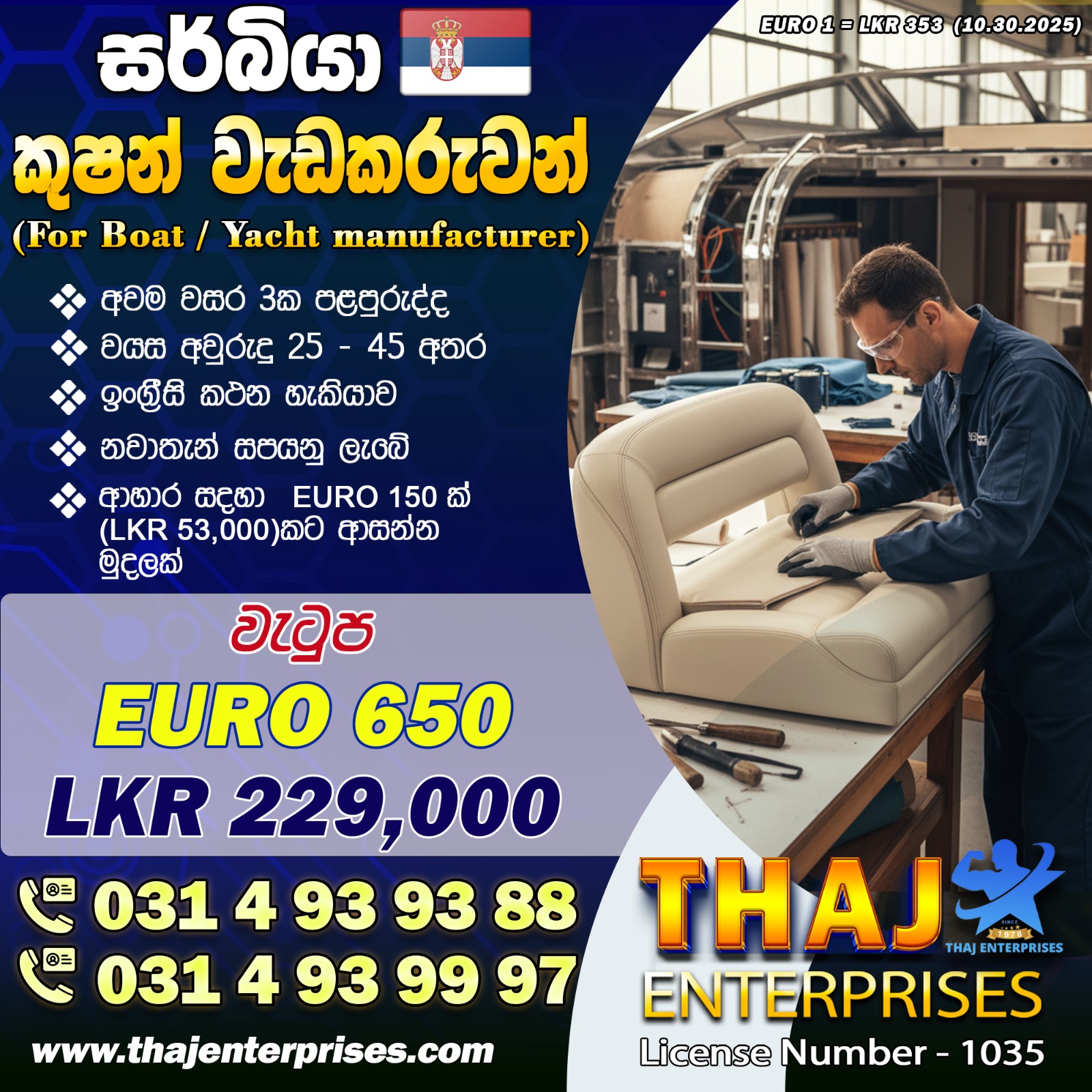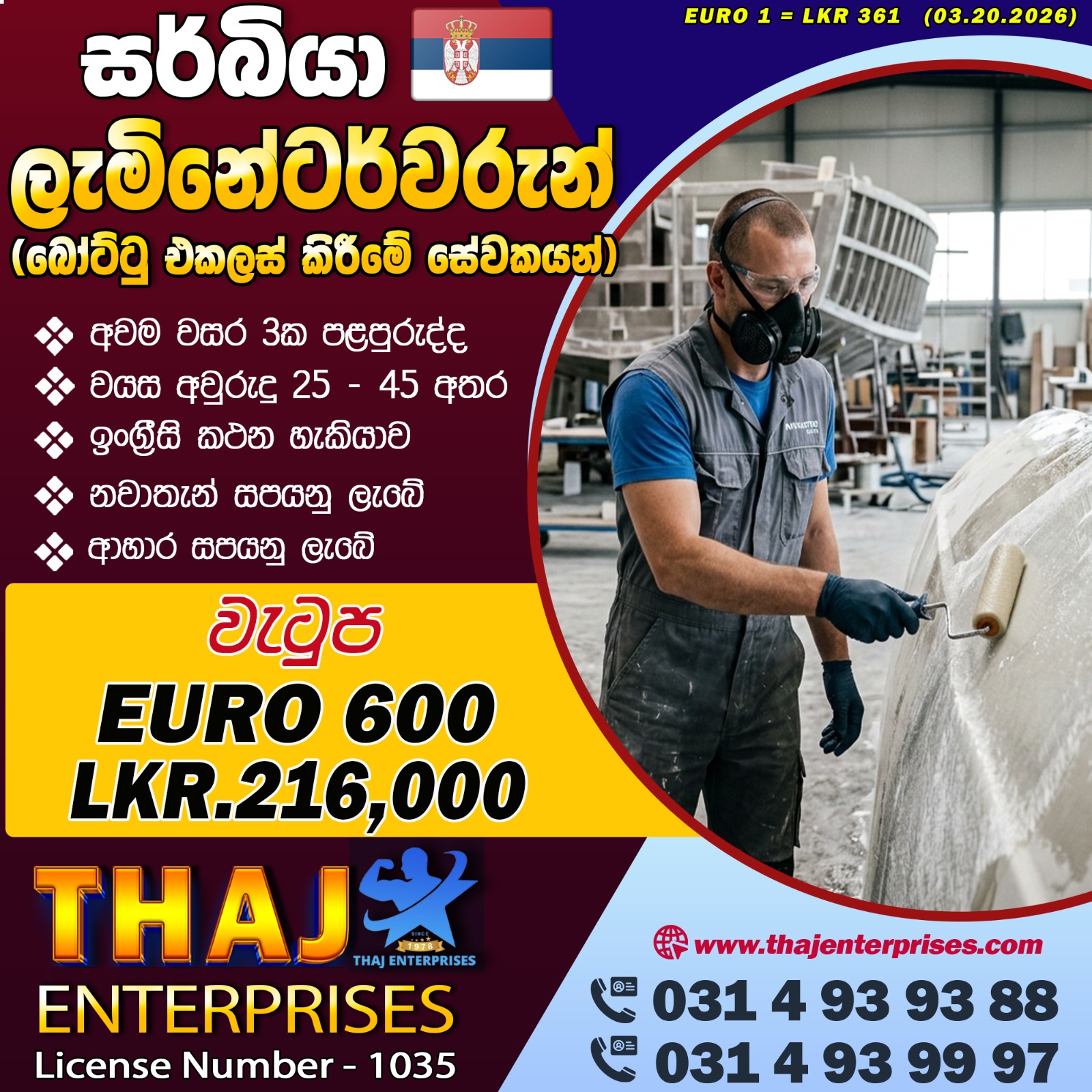 Salary : Euro 650 (රුපියල් 229,000 /-)