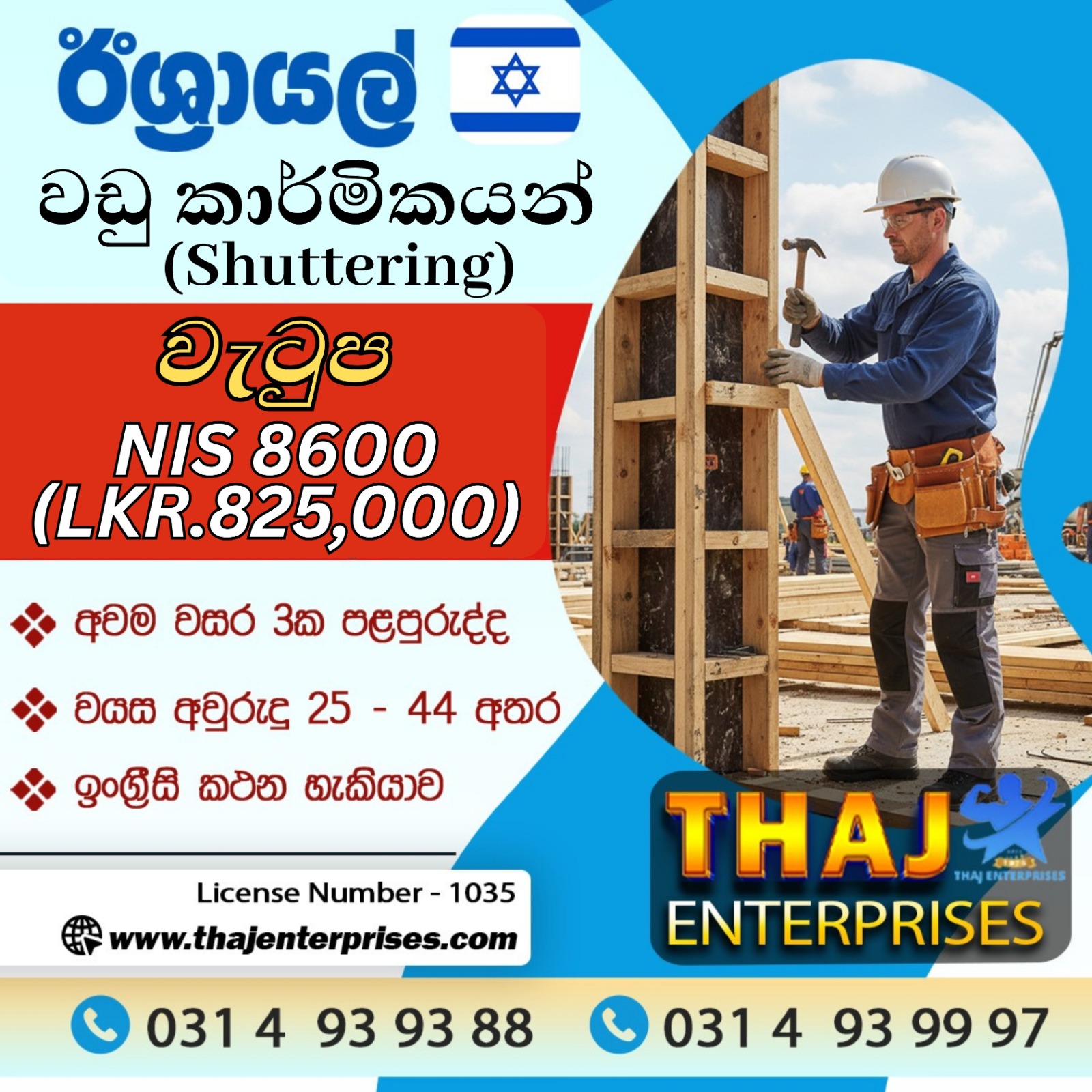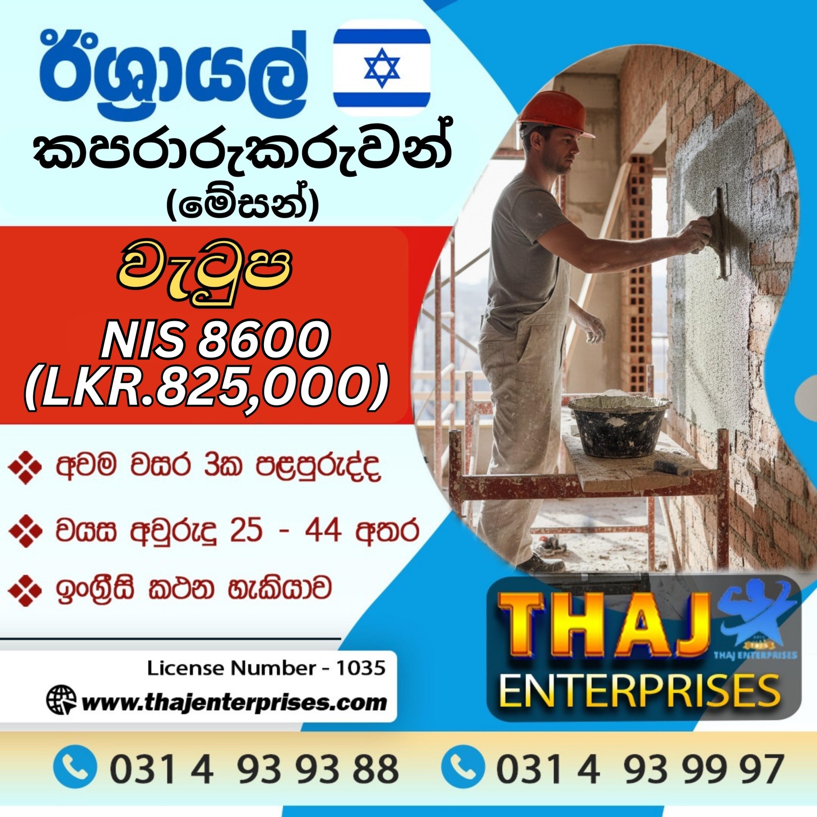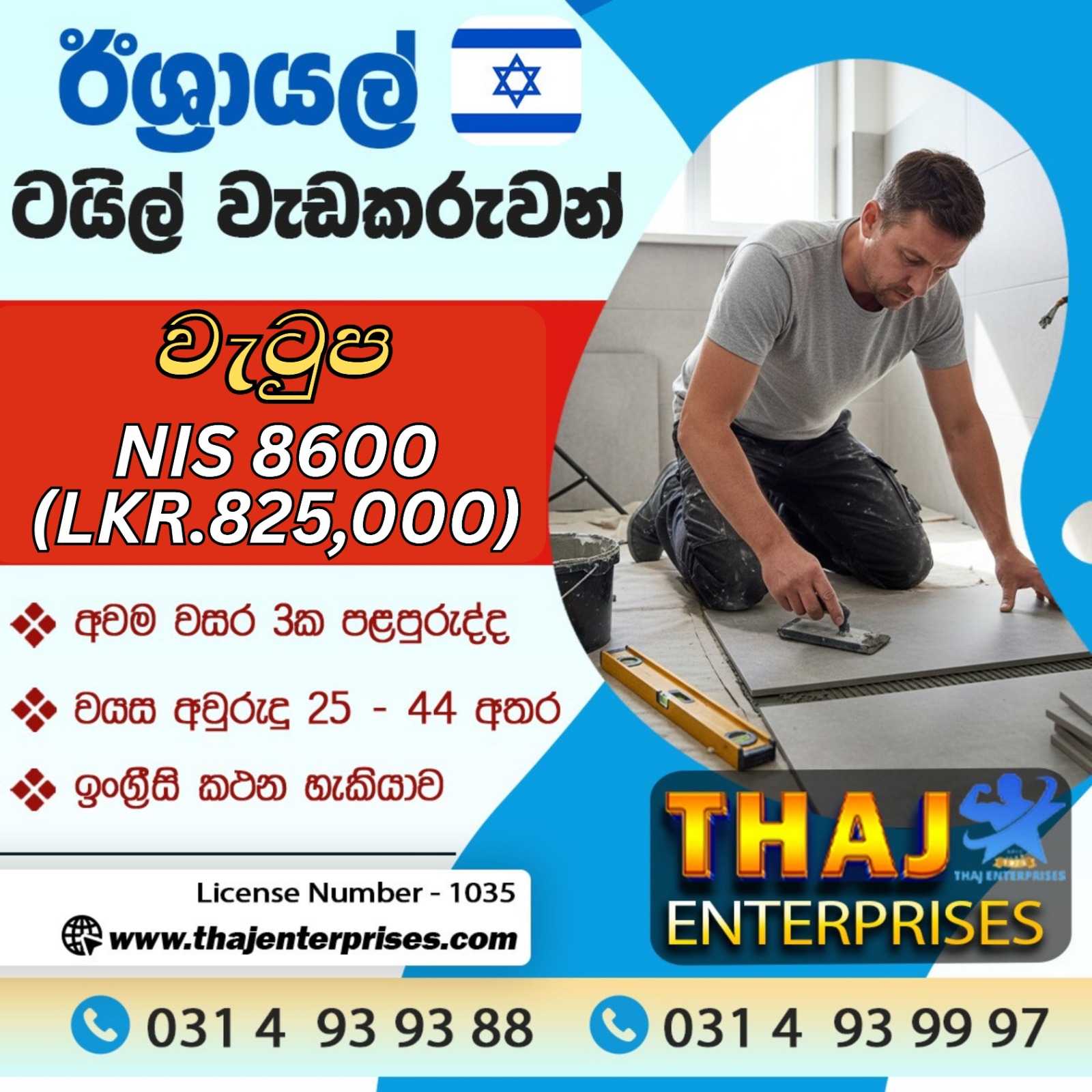 Salary : NIS 8600 (රුපියල් 825,000/-)