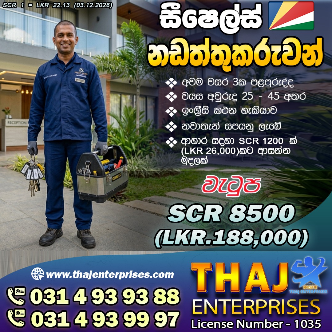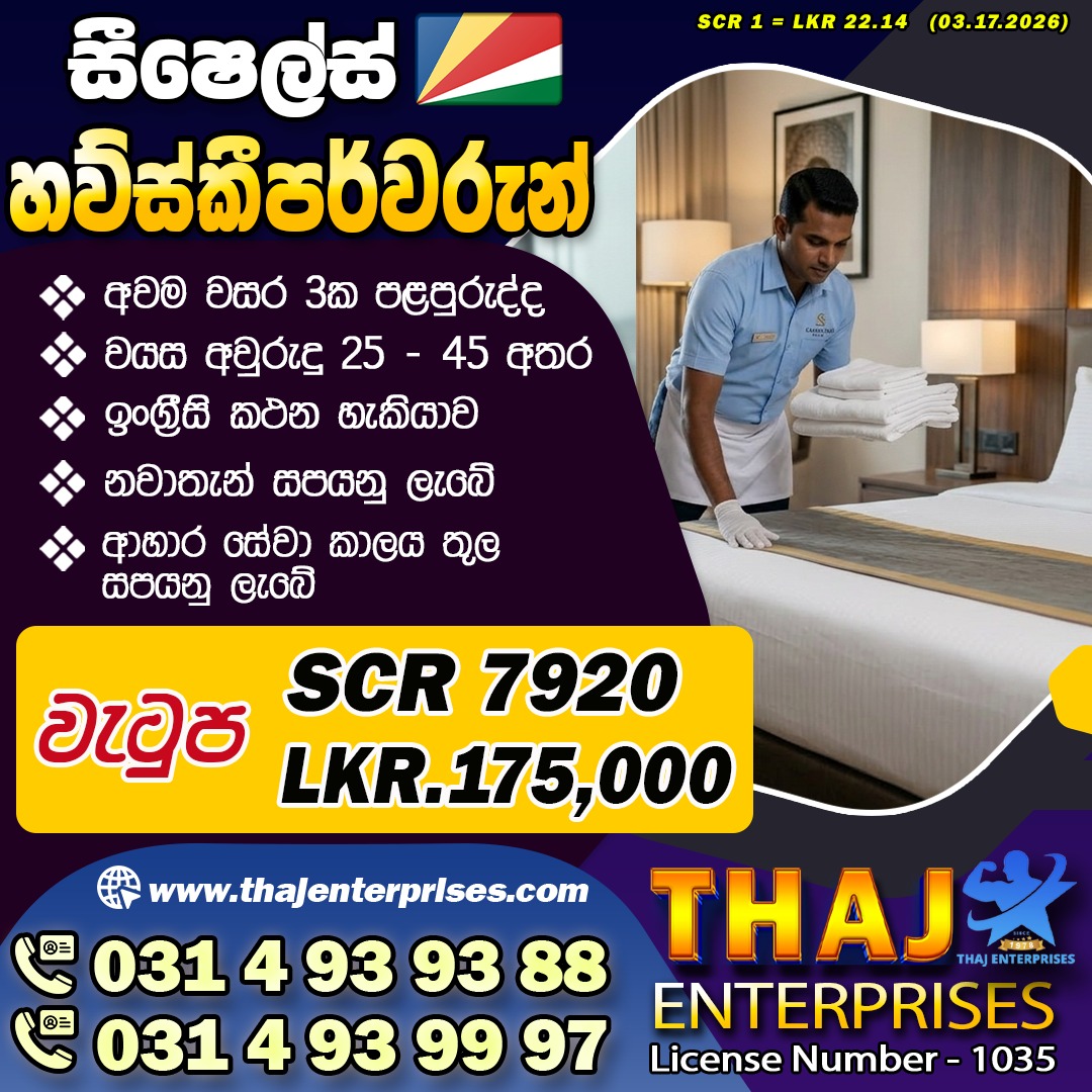Food : ආහාර සදහා SCR 1500 (රුපියල් 33,000/-) සපයනු ලැබේ